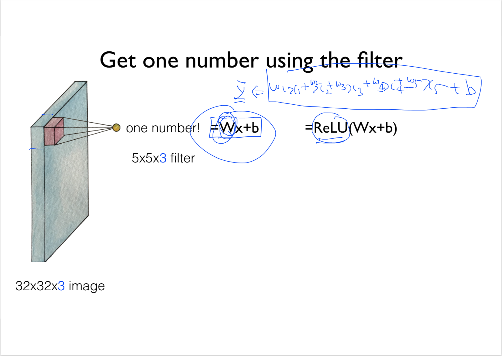- W(weight)가 입력이 있을 때 어떤 숫자로 만들어내는 Filter의 값