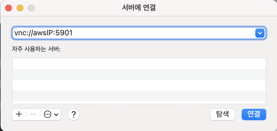 7. Finder에서 command+k로 VNC 실행 후 vnc://우분투 instance Ip:5901로 연결해서 3번에서 입력한 비밀번호로 로그인하면 끝!