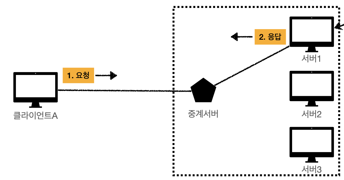 아래와 같이 응답할 수 있는 서버 3개가 있고 중계서버(LoadBalancer 역할)가 있는 구조를 살펴보겠습니다.